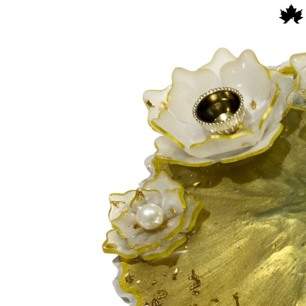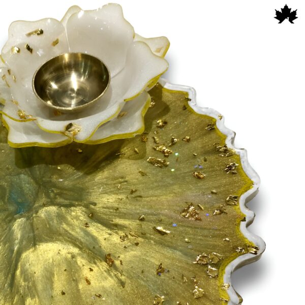 Celebrate traditions your way with our gold & white lotus resin design. This custom pooja thali for festivals is designed to add luxury and personal touch to every special occasion.